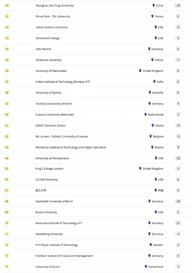 英國:G5高校中,帝國理工(第9)、倫敦政治經(jīng)濟學(xué)院(第19)等均上榜。